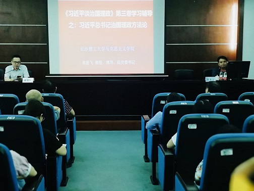 为提升党员理论修养,落实党组织“三会一课”制度,抓实馆党总支和学校关于学习习近平新时代中国特色社会主义思想的工作部署,9月15日下午,图书馆邀请马克思主义学院党总委书记、教授、博士生导师易显飞,在图书馆云塘馆B102会议室以“《习近平谈治国理政》第三卷学习辅导之:习近平总书记治国理政方法论”为题,讲授了一堂准确深刻而又具体实用的理论研究与学习指导的专题党课。图书馆党总支全体党员与会聆听,党课由总支书记夏智勇主持。