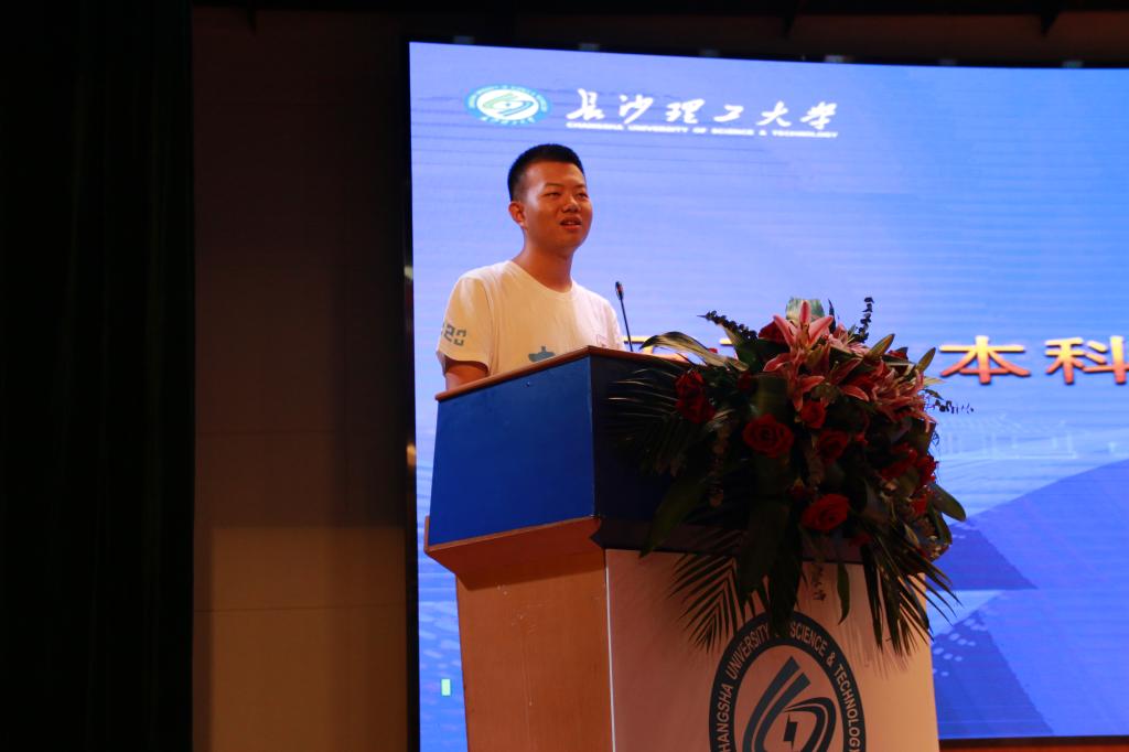 教师代表、曾铃副教授向新生的到来表示热烈的欢迎。他以自身16年前入长理至今的经历为同学们上了一堂生动的大学教育课,提议同学们要多和图书馆、运动场做朋友,当你回首这段青葱岁月时,一定不会为这4年的经历有所遗憾和悔恨。