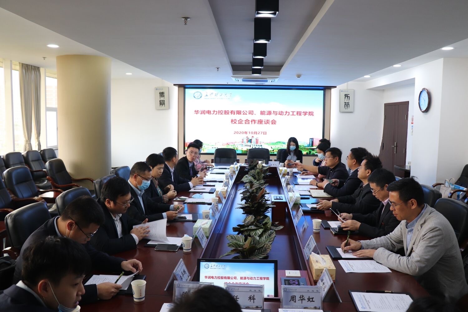 10月27日上午,能动学院与华润电力控股有限公司校企合作座谈会在云塘校区一办六会议室开展。华润电力华南大区人力资源部总经理张蔚、华润电力湖南有限公司副总经理史林、华润电力浮云有限公司副总经理翁廓等相关领导,能动学院党委书记成华、院长陈荐、党委副书记靳攀科,副院长何建军及各系系主任参加,座谈会由成华主持。