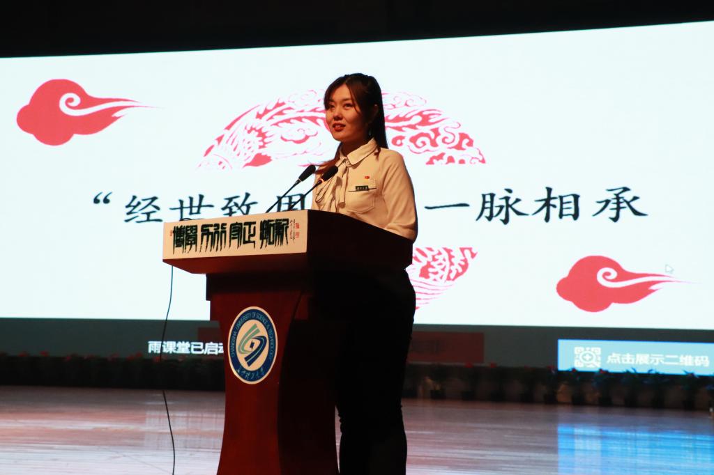 首先,于淼漪通过视频带领大家回顾习近平总书记考察湖南大学岳麓书院时的讲话。主讲人以总书记寄语为切入点,结合湖南大学悠久的历史文化底蕴和自身的实际经历,从经世致用、实事求是、做好时代新人三个角度,鼓励同学们勇担时代重任。