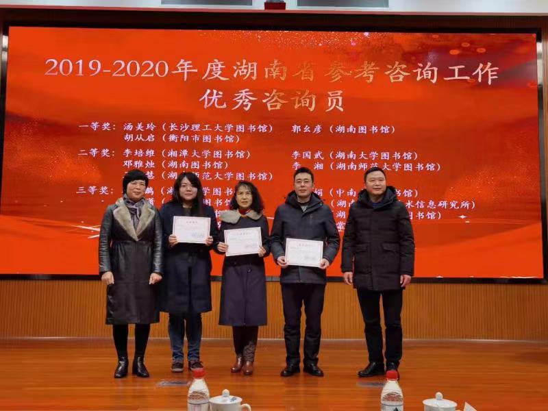 12月14日,湖南省参考咨询业务培训班暨工作研讨会在湖南省图书馆召开,会上对2019-2020年湖南省参考咨询工作先进单位与优秀咨询员进行了表彰,雷竞技官网图书馆再次荣获“湖南省参考咨询工作先进单位”荣誉称号,我馆咨询员汤美玲老师以第一名的成绩获得一等奖,荣获“湖南省参考咨询工作优秀咨询员”荣誉称号。