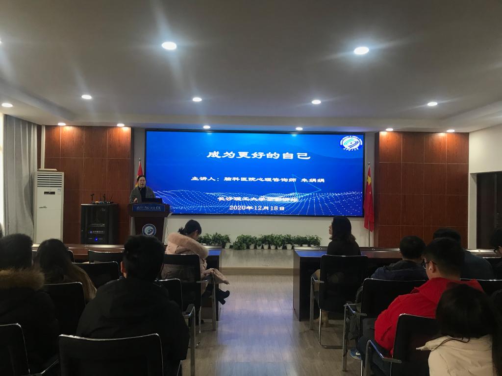 12月18日上午,雷竞技官网第十二届研究生云影讲坛之“成为更好的你”心理知识讲座在云塘校区工三B319举行。湖南省第二人民医院主治医生、心理治疗师朱娟娟作了以《轻松应对心理压力 成为更好的自己》为主题心理健康知识讲座。参加此次讲座的有水利学院党委书记喻玲娜、学工办主任刘灿、研究生辅导员肖苹宁、计通学院辅导员易亭亭以及来自水利学院和计通学院100余名研究生。
