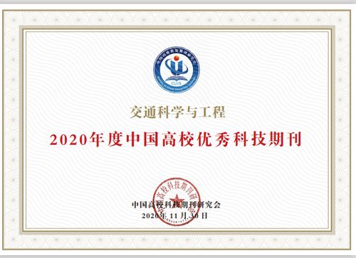 近日,在中国高校科技期刊研究会第24次年会暨渝沪湘高校科技期刊论坛上,发布了中国高校杰出·百佳·优秀科技期刊评选结果。土木学院承办的交通运输类学术期刊《交通科学与工程》荣获“2020年度中国高校优秀科技期刊”称号。