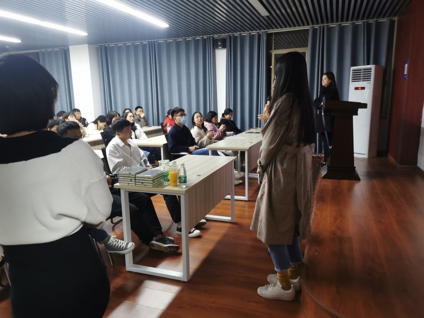 宣讲会上,主讲人十分热情,同学们也积极回应。各企业负责人清晰地介绍了发展情况、公司文化、愿景定位等企业相关信息,并对招聘计划、实习生录用方式等方面进行了详细说明,让学生充分了解公司的发展与政策。同时宣讲人还讲述了目前建筑类专业的发展形势,让学生对自己专业的了解程度进一步加深。提问环节中,我院学子从假期安排、薪酬拟定、工作时间等多方面进行提问,宣讲人均耐心解答。在宣讲会结束后,企业负责人查看个人简历,为有意向应聘的学生进行现场面试。