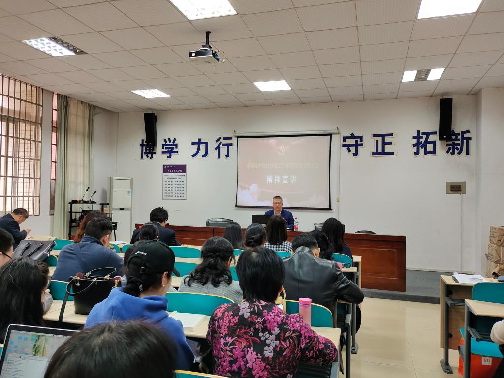 4月20日下午,校党委副书记蒋昌波在云塘校区文科楼为马克思主义学院全体教职工宣讲学校第四次党代会精神,马克思主义学院党委书记易显飞主持。