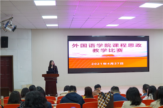 为进一步挖掘外语课程中蕴含的思政元素,大力推动以“课程思政”为目标的课堂教学改革,全面提升学院教师课程思政教学能力,4月27日下午,外语学院课程思政教学比赛在文科楼举行。来自公共英语基础部、提高部和外国语言文学系的九名教师参加比赛。湖南省2019年首届普通高校外语课程思政教学大赛特等奖获得者、中南大学教授张春敏,2020年湖南省普通高校外语课程思政大赛一等奖与首届全国高等学校外语课程思政教学比赛特等奖获得者、湖南师范大学教师王兰,以及我院段胜峰、黄坚、邓跃平三位教授担任此次比赛的评委。