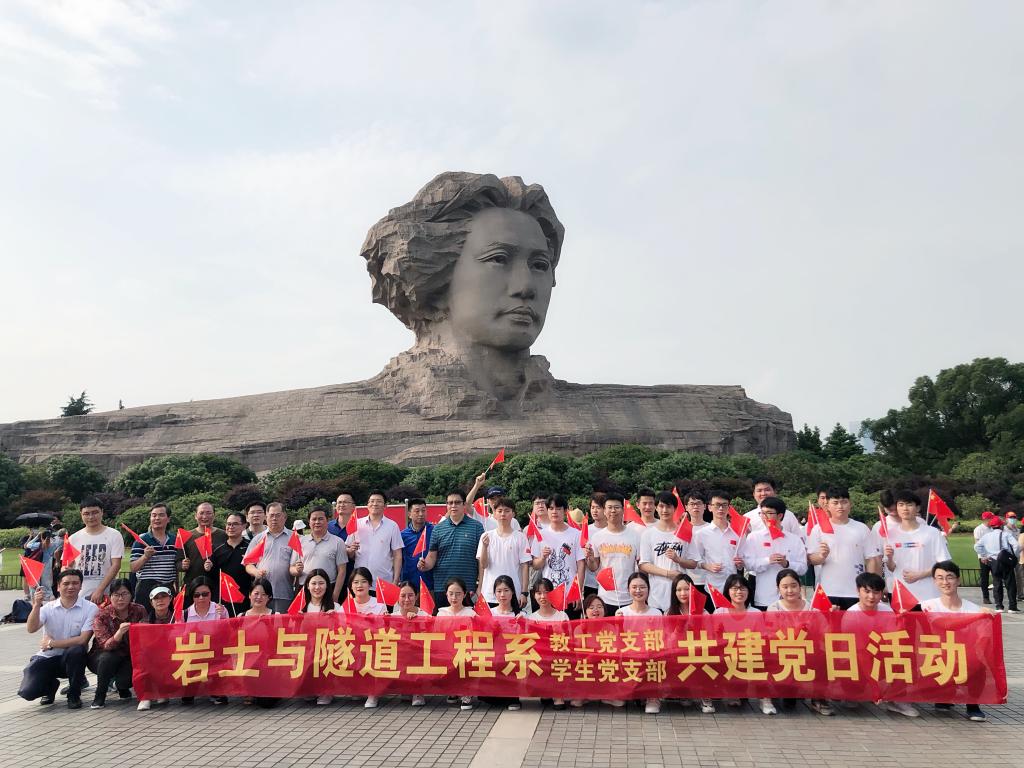 为庆祝中国共产党成立100周年,深入领会习近平总书记在党史学习教育动员大会上的重要讲话精神,6月1日下午,土木学院岩土与隧道工程系教工党支部与学生党支部开展师生齐学共进联合党日活动。50余名师生党员在橘子洲头重温入党誓词,齐学红色经典,畅聊入党初心;教授讲学,现场开展专业认知教育。