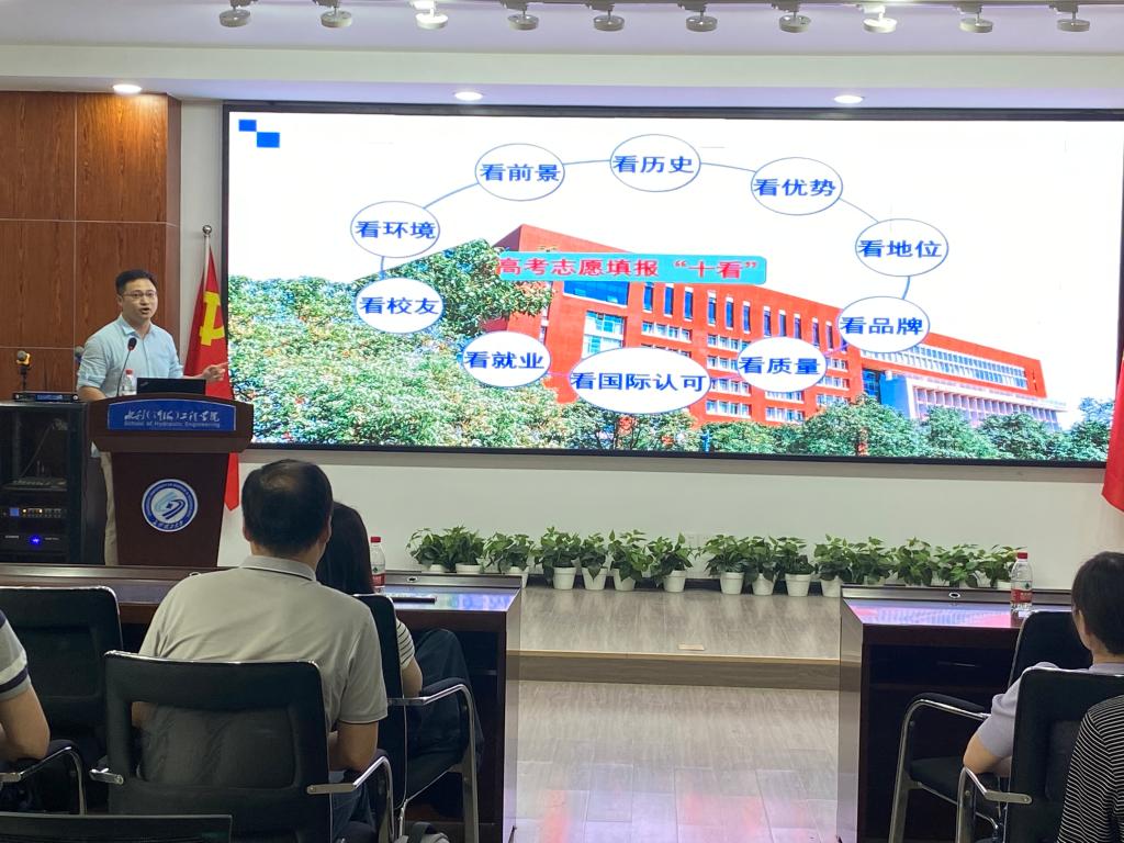 此次培训会议主要围绕招生概况、志愿填报、招生宣传工作要求等事项展开。喻玲娜表示,近年来,水利学院生源质量和人才培养稳步提升,随着高考改革持续推进,学院要把握新高考改革契机,共同优化升学衔接途径。