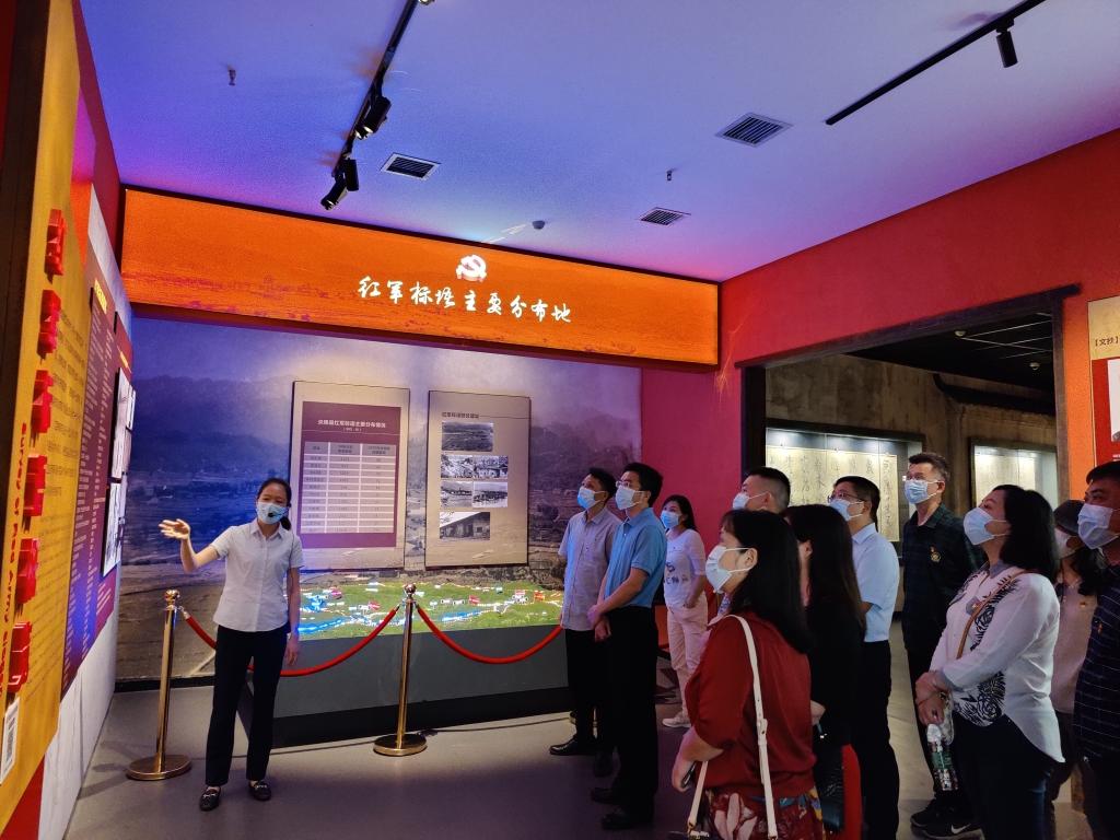 大家依次到接龙桥战斗旧址、红军标语纪念馆、首次连队建党旧址叶家祠、水口连队建党旧址朱家祠、炎陵综合培训中心等地参观学习。在红军标语纪念馆,一张张鲜活的图片,一句句生动的标语,一个个复原的场景,客观真实地展示了井冈山革命根据地和湘赣革命根据地时期,工农红军、地方武装、苏维埃政权以及群团组织等,书写标语动员群众、组织群众、武装群众,分化打击敌人的斗争历史。在首次连队建党旧址叶家祠,看着阁楼桌上的马灯,默读着入党誓词,仿佛穿越走进历史画面,看见了人民军队第一个连队党支部的诞生,感受到6名战士在那艰难困苦岁月中坚定的理想信念与巨大的定力勇气。在炎陵综合培训中心,一行人员参观了红色培训的场地、设施等情况,并与肖志高讨论红色培训的开展情况。