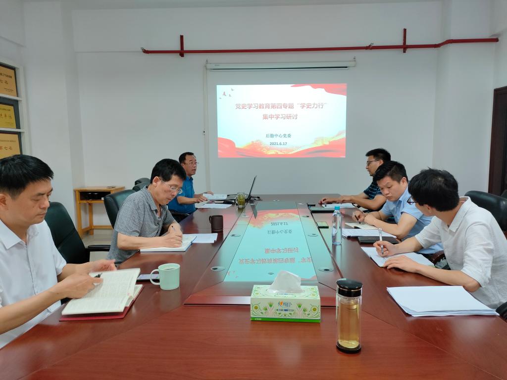 6月17日下午,后勤中心党委中心组以“学史力行”为主题,在能源大楼1栋1032会议室开展党史学习教育第四专题集中学习研讨。中心党委书记王明彦主持并作主旨发言,中心主任孔蔚湘、副主任高顺利作领学发言。