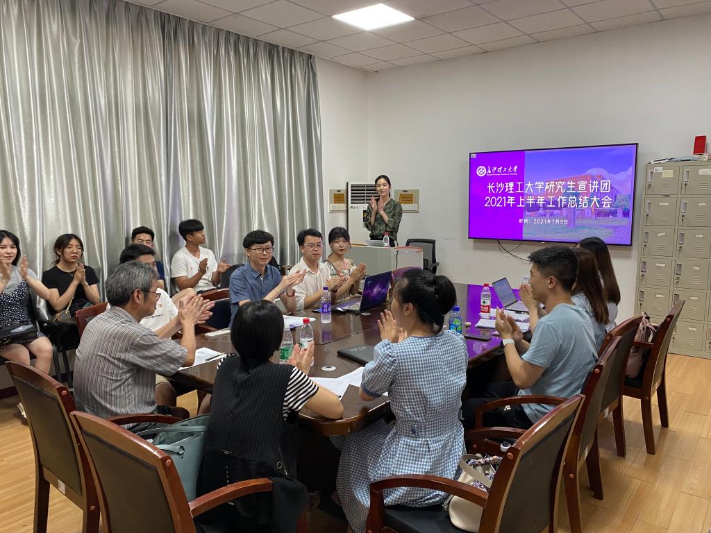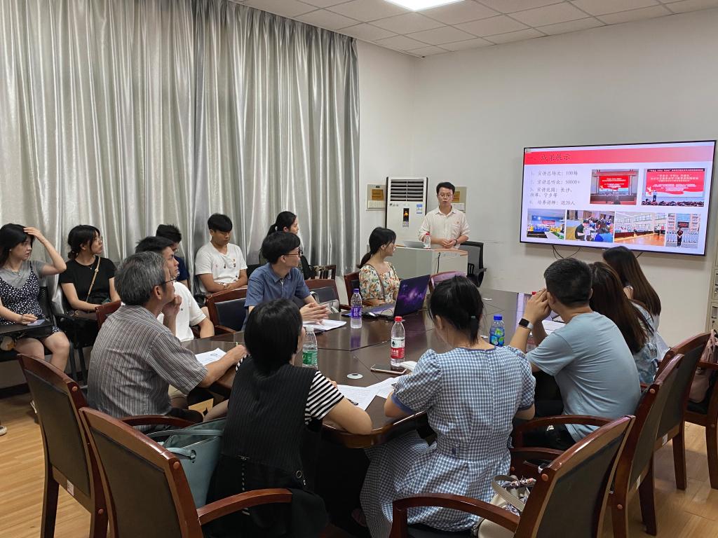 为总结前阶段工作经验,部署下一步工作,长沙理工大学研究生宣讲团于7月5日下午在金盆岭校区4教503教室开展研究生理论宣讲团学期工作总结会议。此次会议邀请了宣讲团指导教师赖某深、钟芙蓉、曾蓓到场指导,邓丽伶同学主持总结会议,宣讲团全体成员参加。