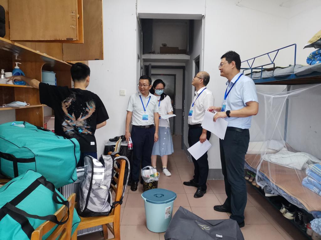 院领导一行先后在迎新报到点、党员服务岗进行视察,询问新生分班情况、卓越班教改班入选情况,了解新生宿舍分布情况以及新生报到人数。随后,一同走访西五男生宿舍、西二女生宿舍,与新生亲切交谈、询问报到是否顺利、有无疑问,提醒他们注意宿舍安全等。