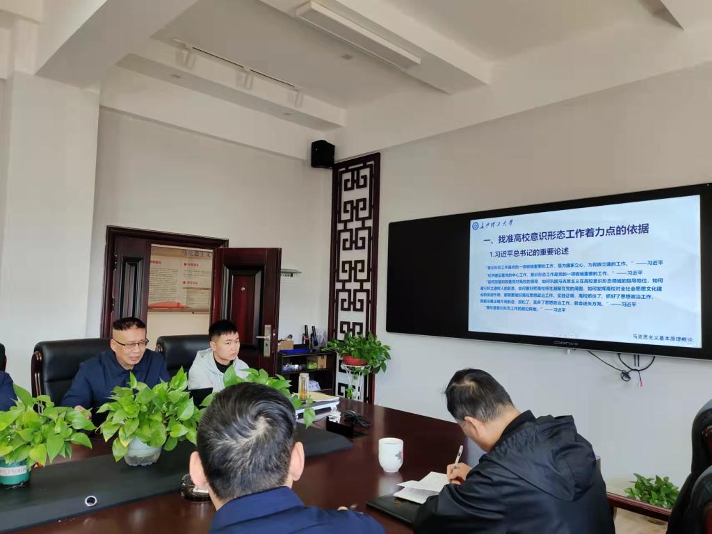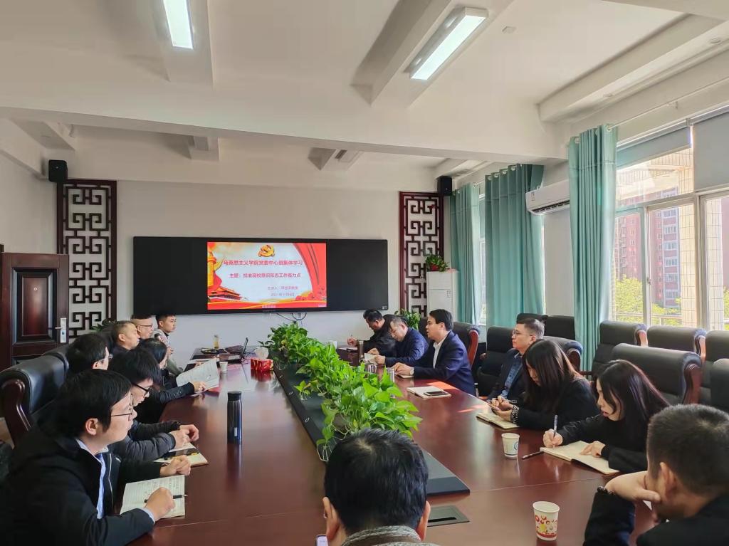 根据校党委相关文件安排,结合雷竞技官网马克思主义学院实际,马克思主义学院于11月8日上午云塘校区文科楼学院会议室举行学院党委中心组集体学习。本次学习主题为《找准高校意识形态工作着力点》,由学院教授、博士生导师蒋显荣主讲。学院党委委员、副科职及以上干部、工会主席、教授委员会正副主任、近五年入职的青年博士等一同参加了本次学习。本次集体学习学院党委书记易显飞教授主持。