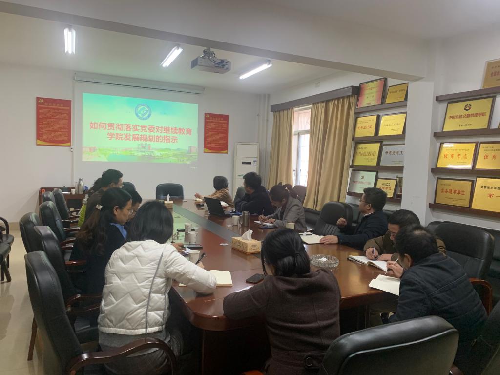 11月8日,继教学院在15教三楼会议室召开班子成员扩大会,讨论如何贯彻落实校党委、行政对继续教育发展规划的指示精神,会议由院党总支书记何纯芳主持,学院党政班子成员和自考、函授、培训及本部助学负责人参加会议。