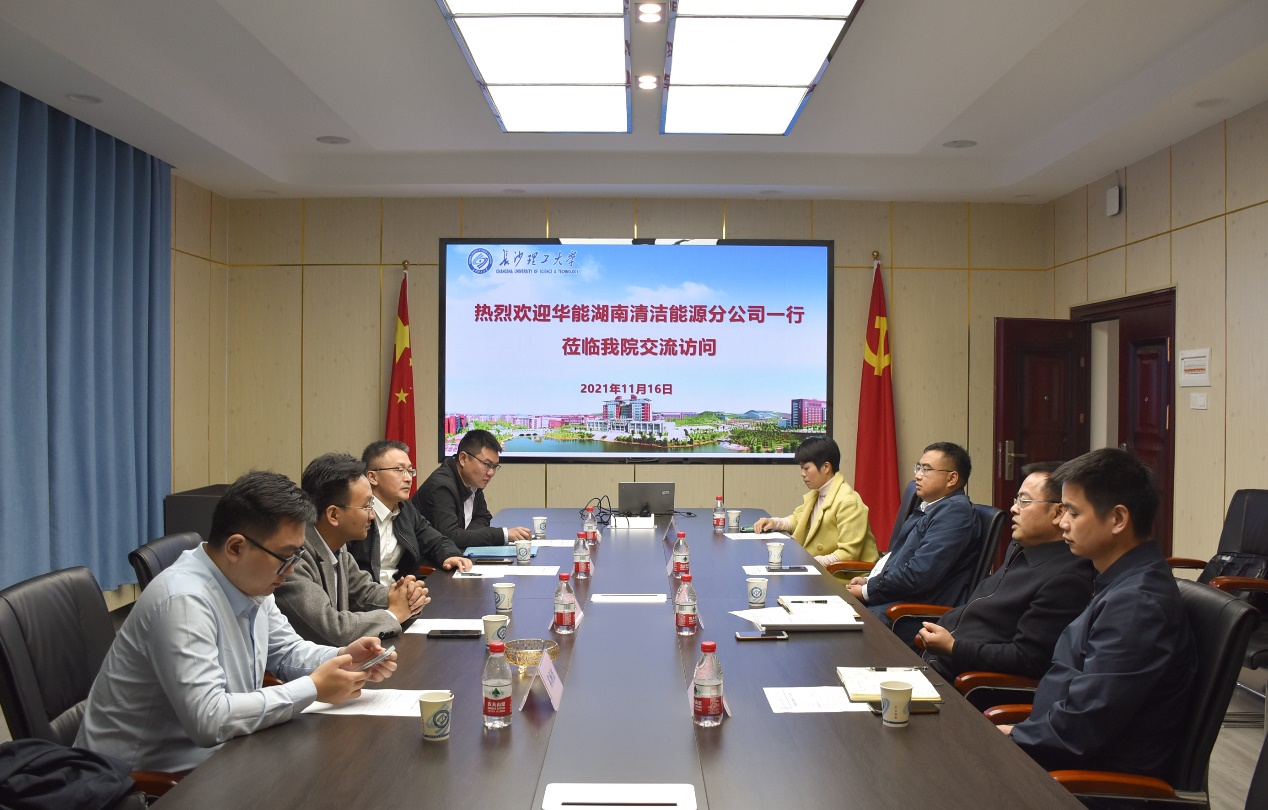 11月16日下午,华能湖南清洁能源分公司副总经理胡照宇、综合部主任李海星、运维部主任吴可可、苏杨波等一行来能动学院交流。能动学院党委书记成华、院长陈荐、副院长李传常和邹淑云老师等参加了交流活动。