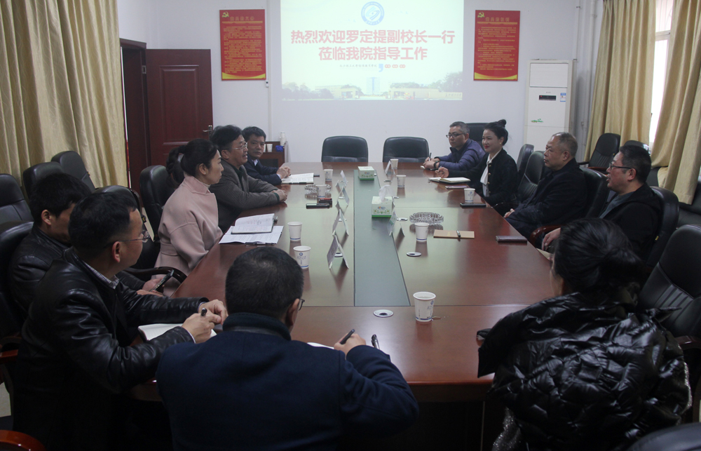 12月10日下午,湘潭大学副校长罗定提、继续教育学院院长陈立新一行来我院调研。继续教育学院院长邹兴平、副书记兼副院长谢士成、副院长向英、党总支委员兼办公室主任易国萍和本部助学中心主任等参加了调研座谈会。