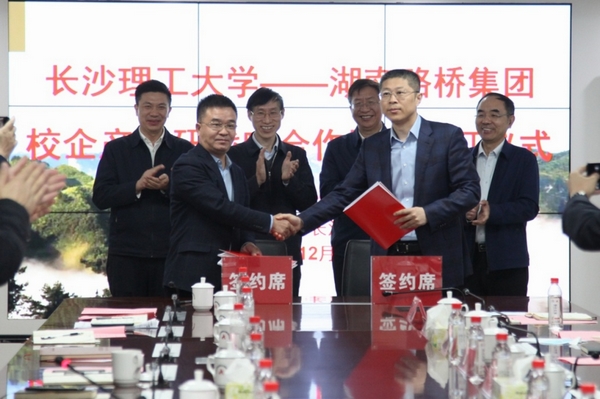 会上,土木工程学院院长王磊与湖南路桥集团副总经理刘迪祥代表校企双方签署战略合作协议,根据协议,双方将在科研开发、技术攻关、人才培养、资源共享等方面进行深入、全面、多元化的合作。