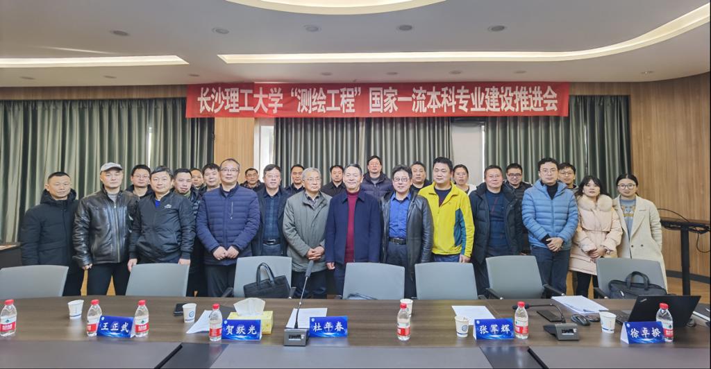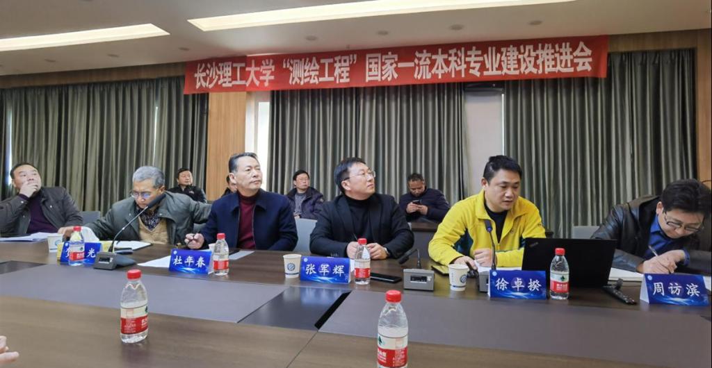 为推动雷竞技官网“测绘工程”国家一流本科专业建设,2022年1月19日,“测绘工程”国家一流本科专业建设推进会在公路工程实验中心306会议室举行。教育部高等学校测绘工程专业教指委委员、中国矿业大学教授高井祥,教育部高等学校测绘工程专业教指委委员、广州南方测绘科技股份有限公司集团副总经理郭宝宇,教育部高等学校测绘工程专业教指委委员、江西理工大学教授刘小生线上参会指导,中国有色金属长沙勘察设计研究院有限公司副总经理,研究员级高工杜年春到会指导。教育部高等学校测绘工程专业教指委委员、长沙理工大学“测绘工程”一流专业负责人贺跃光教授,交通运输工程学院院长张军辉、党委委员王正武,副院长周访滨和测绘工程专业骨干教师出席会议。