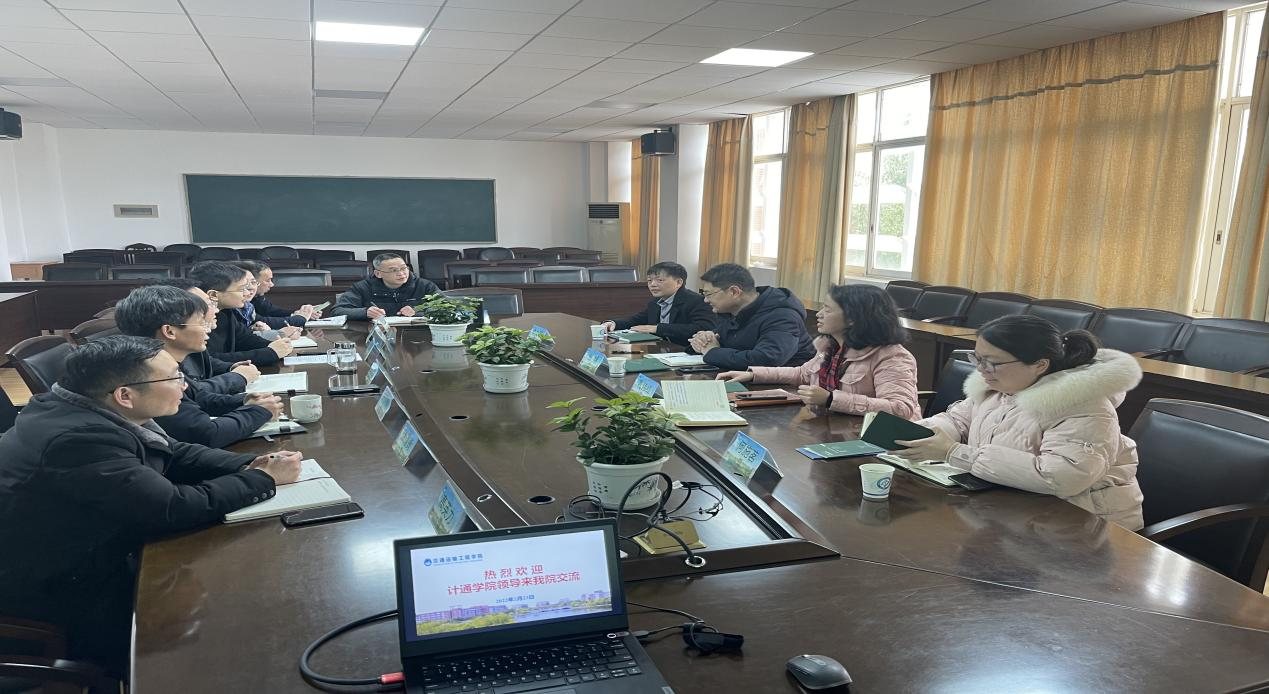 2月23日下午,计通学院与交通学院举行交流研讨会,计通学院党委书记孔伟红、院长张锦,交通学院党委书记刘朝辉、院长张军辉等成员参加交流研讨。