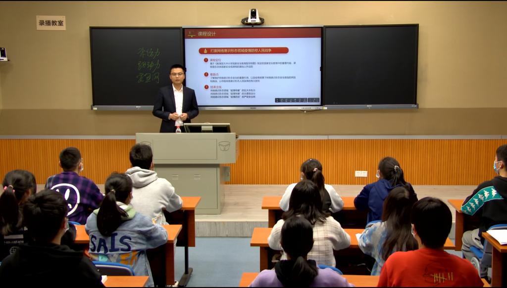 晚间,学生宿舍灯火通明,作为立体化思政触角延伸的最后一公里,同学们三五成群在宿舍用B站观看国家安全教育微视频。此外,辅导员刘阳还结合全民国家安全教育日录制了《打赢网络意识形态领域‘疫情’防控人民战争》专题微课。辅导员与思政课教师深度协同,构建思政工作“一体”不可或缺的“两翼”,一直是学校提升思想政治工作实效性的重要抓手。从辅导员讲党史故事系列节目——《红耀湖湘》,到每学期覆盖全校学生的形势政策课,到国家安全教育、法制教育等,辅导员始终以三全育人“发动机”的角色助推画好思政工作同心圆。