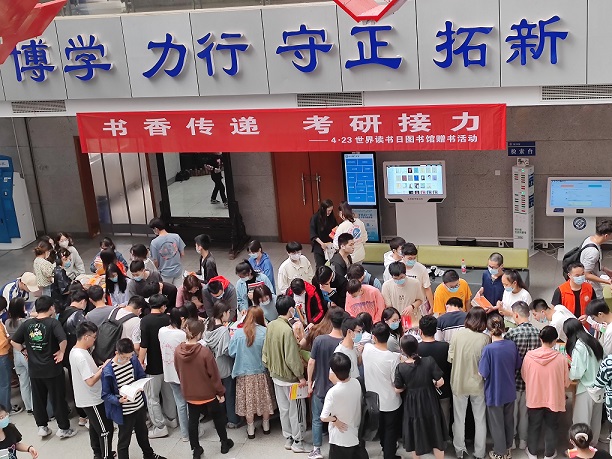 本次世界读书日系列活动采取线上与线下相结合的形式,现场活动共有三项:“书香传递,考研接力”图书馆赠书活动,第四届“书海探宝”活动,云影悦享影院专场电影。活动现场人潮涌动,大家的参与热情高涨。