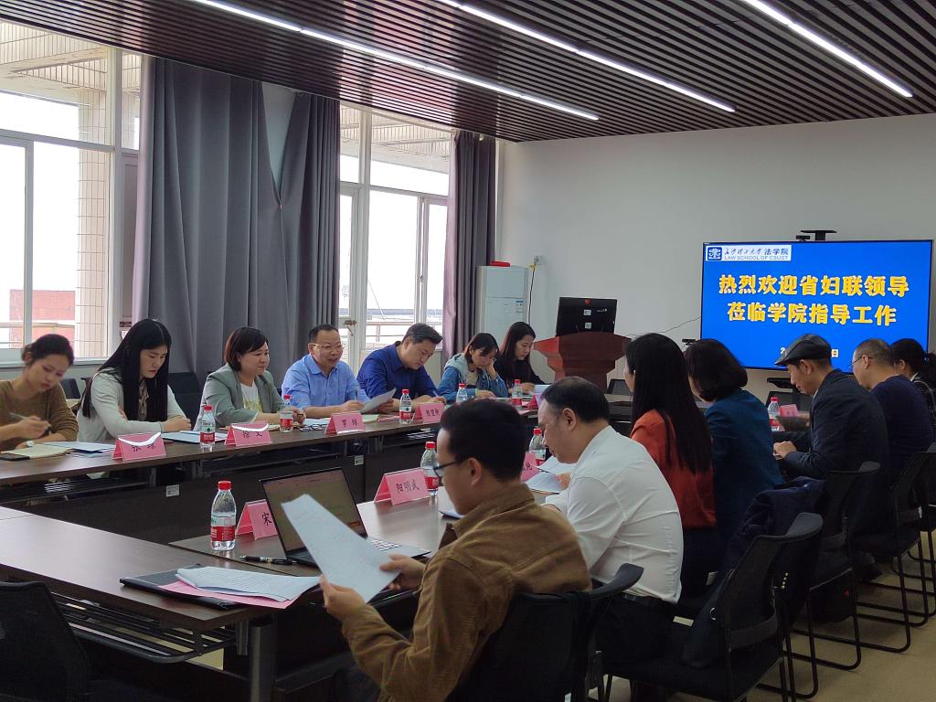 5月12日下午,湖南省妇联办公室主任熊望衡、权益部部长罗琼等一行7人莅临法学院院调研指导工作,调研座谈会在云塘校区文科楼C区6楼多功能会议室举行。校党委委员、宣传部部长方琼,院党总支书记田兴洪、院长张敏纯、副院长申纯以及部分教师和学生代表参加了调研座谈。调研团队首先参观了法学院“扶青行”涉罪未成年人社会调查工作室,听取了学生负责人对涉罪未成年人社会调查的流程以及相关工作的介绍。