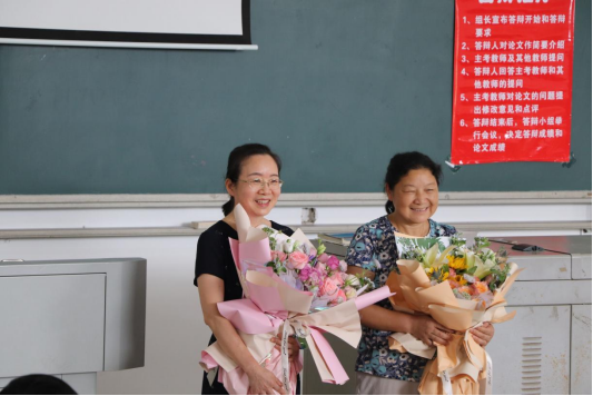 6月9日上午,在云塘校区综合教学楼B202教室2022届会计专业本科毕业生论文答辩现场,在文科楼A208教室第四节课课后,经管学院为今年即将退休的冯丽霞、刘建英、蒋芝花三位老师举行了两场特别的荣退仪式。学院领导、财会系所有老师、部分学生代表等共同见证了这场特殊的仪式。院工会主席何昊主持了仪式,介绍了三位老师的相关情况,财会系系主任张鼎祖、支部书记刘天雄代表系里送上感恩与祝福,学生代表纷纷上台表达对恩师的感谢之情,三位老师也激动地分享了从教38年来与学校学院共成长、共发展的职场历程与此刻的复杂心情。学院党委书记丁丹、副院长彭新宇代表学院为三位老师送上礼物和真挚的感谢。所有在场的师生一起向三位老师鞠躬并送上最真诚的祝福“老师您辛苦了,退休快乐!”