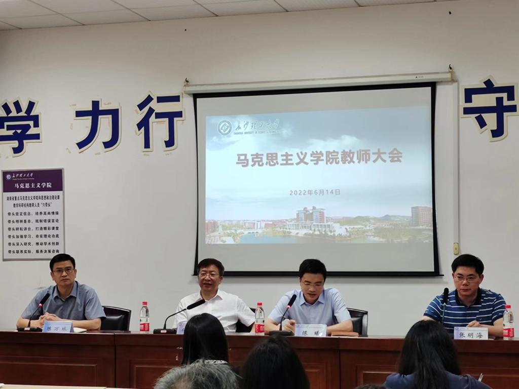 6月14日下午,马克思主义学院在云塘校区文科楼C202举行全院教师大会,校党委书记付宏渊出席会议并发表讲话,党委组织部常务副部长陈曦出席会议。马克思主义学院全体教职工参加大会,大会由学院院长陈万球主持。