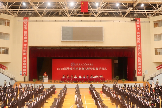 盛夏花开,骊歌声起。6月21日下午,城南学院2022届本科生毕业典礼暨学位授予仪式在金盆岭校区体育馆举行。毕业生身着学位服,带着激动和喜悦的心情共赴盛典,见证属于自己的人生重要时刻。城南学院董事长洪源渤,学校有关职能部门负责人、教学院代表、城南学院领导、教师代表、部分家长及2022届毕业生参加典礼。典礼由长沙理工大学副校长谈传生主持。