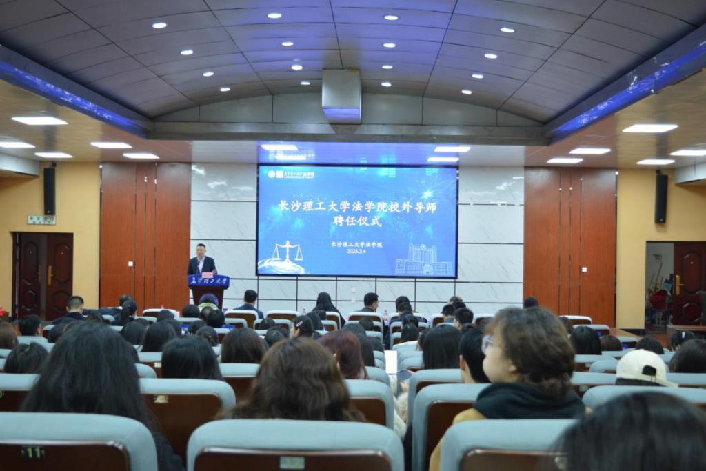3月4日下午,法学院校外导师聘任仪式暨人才联合培养座谈会在金盆岭校区四号教学楼举行。长沙市司法局四级调研员付利军,长沙市司法局律师工作处副处长、市律师秘书长谢娇出席聘任仪式,来自全市24家律所的30位实务经验丰富的执业律师作为新聘校外硕士生导师、企业班级导师代表与学院师生代表一起参加活动。活动由院党委书记龚文斌主持。