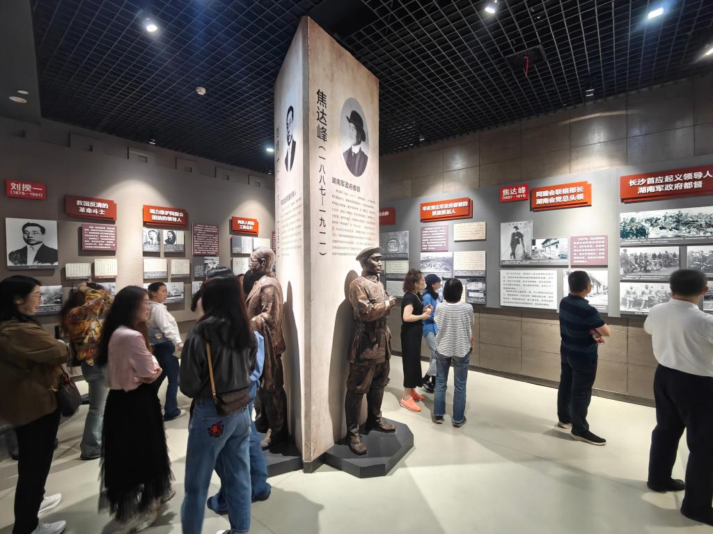 在讲解员引导下,全体人员依次参观了黄兴生平事迹陈列馆、辛亥革命史迹展等核心展区。一件件斑驳的文物、一封封泛黄的手札,生动再现了黄兴先生“无我、笃实”的革命精神。在黄兴书斋复原场景前,教师们驻足聆听“投笔从戎”的典故;于辛亥革命武昌起义浮雕墙下,党员们重温“敢为人先”的湖湘精神。