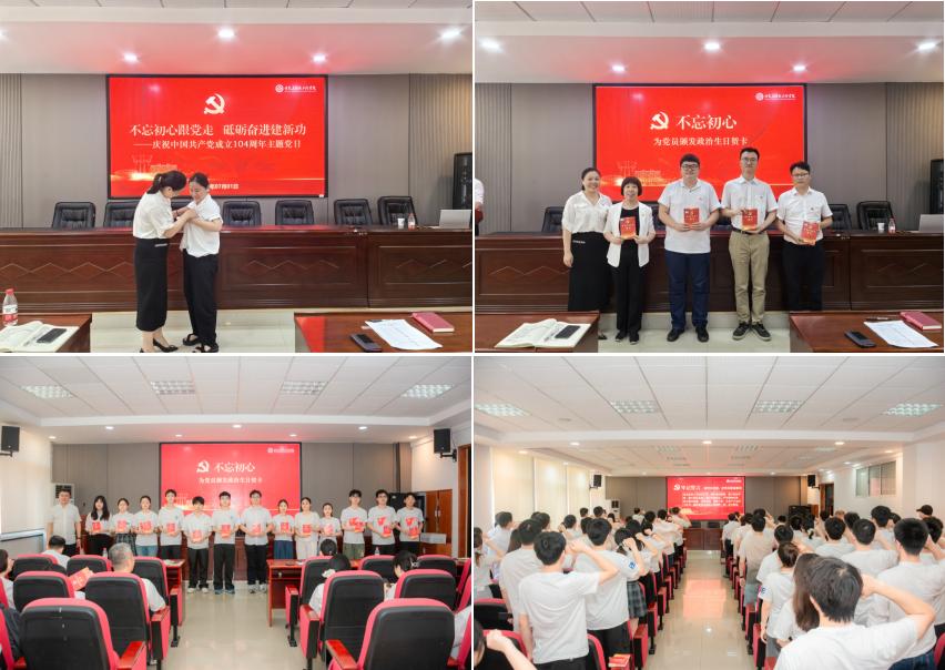 7月1日,电气学院庆祝中国共产党成立104周年“不忘初心跟党走 砥砺奋进建新功”主题党日活动在云塘校区工一B503报告厅举行。学院党委班子、全体教工党员及学生党员代表200余人参加。湖南省委教育工委党校原常务副校长刘国华教授应邀上专题党课,院党委书记丁丹为新党员佩戴党员徽章、为全体师生党员颁发政治生日贺卡并讲话,院党委副书记周巍主持活动并带领新党员宣誓、老党员重温誓词。