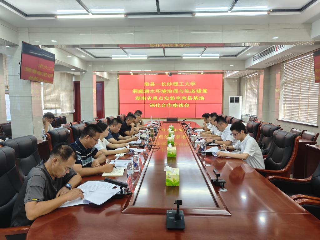 当天,校地双方还在县水利局举行了深化合作座谈会,围绕基地建设与合作展开深入交流。会上,长沙理工大学相关负责人详细介绍了初步拟制的人才培养工作方案、技术攻关工作方案等,与会人员结合南县水资源现状、生态保护需求等实际情况就项目选定、水环境治理难点、如何丰富基地建设内涵等议题展开热烈讨论,为基地未来发展凝聚共识。