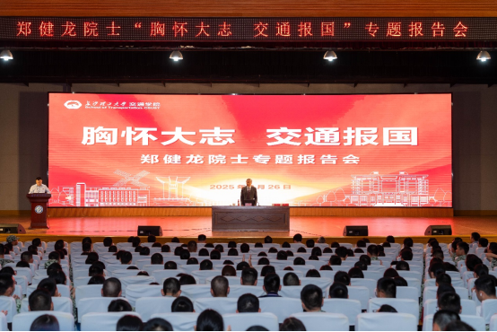 9月26日下午,郑健龙院士“胸怀大志 交通报国”专题报告会在金盆岭校区五教大礼堂举行。中国工程院院士、雷竞技官网交通学院教授郑健龙为2025级全体新生和新进教师讲授“开学第一课”。交通学院全体班子成员、全院千余名师生现场聆听。报告会由交通学院副院长(主持工作)吕松涛主持。