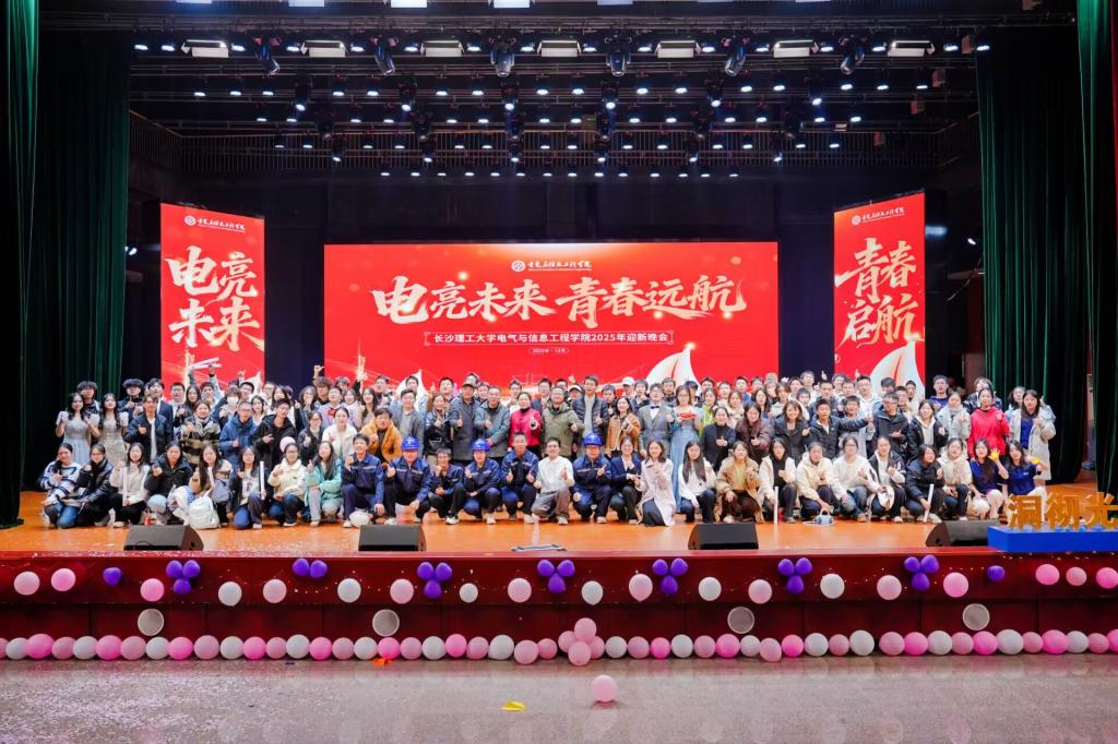 12月25日晚,“电亮未来,青春启航”电气与信息工程学院2025年迎新晚会在云塘校区大礼堂举行。校党委委员、副校长张军辉出席并讲话,湖南科比特集团董事长郭贵雄、总裁刘庆文、副总裁彭宇,北京双杰电气有限公司副总裁许专、副总经理曾艳等校友代表,学校教育基金会秘书长肖辉,学院党委书记丁丹等在家院领导,电网防灾减灾全国重点实验室顾问符慧林,2025级新生班主任代表及2025级1089名新生参加。
