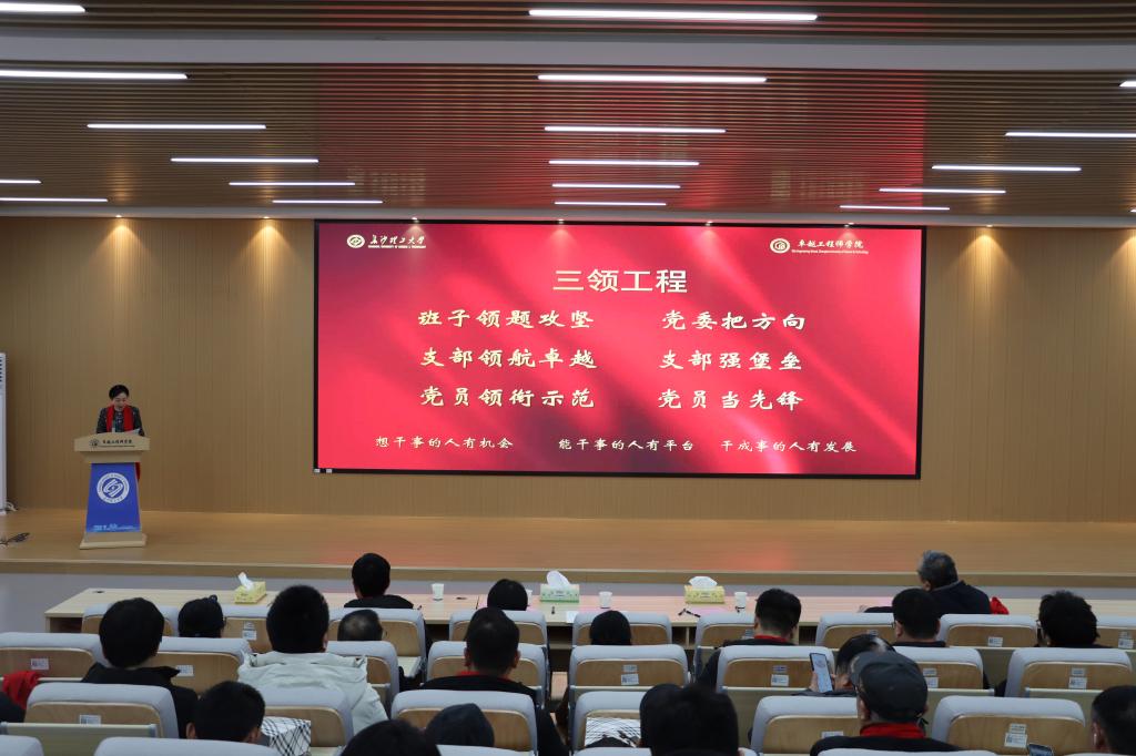 院党委书记杨晨在讲话中提到,过去一年,学院党委坚持以“三领工程”为总抓手,系统构建“班子领题攻坚、支部领航卓越、党员领衔示范”的工作格局,将党的政治优势、组织优势深度融入卓越工程师培养全过程,在育人模式改革、创新创业生态培育、安全稳定防线构筑等方面取得了扎实成效,实现了党建引领与事业发展的同频共振。杨晨表示,面向未来,学院党委将以“三领工程”为依托,营造风清气正、干事创业好环境,让想干事的人有机会、能干事的人有平台、干成事的人有发展,希望全体教职工同心同德、建言献策,共同把学院建设好、发展好。