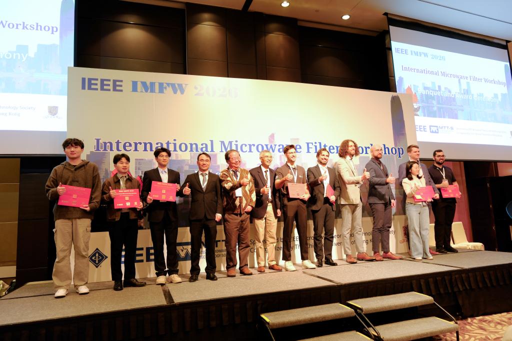 近日,国际微波滤波器研讨会(IEEE International Microwave Filter Workshop 2026,下文简称IEEE IMFW 2026)在中国香港落幕。本次研讨会设有主旨报告、特邀讲座、产业论坛及国际滤波器设计大赛等多个环节。物电学院研究生团队在指导老师刘凡的带领下,与来自全球高校和科研机构的20余支高水平队伍同台竞技,在国际滤波器设计大赛中夺得亚军。
