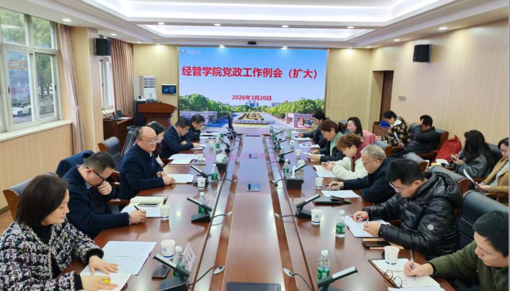 3月20日,经管学院召开2026年春季学期党政工作例会扩大会议,研究部署2026年各项重点工作,凝聚共识,明确奋进方向。院领导班子成员、各系正副主任、教工党支部书记等行政部门负责人参加会议。会议上,院长彭新宇组织学习了2026年学校工作要点,重点解读了学院工作要点。2026年,学院将以会计博士专业学位点申报工作为重... 【2026-03-23】