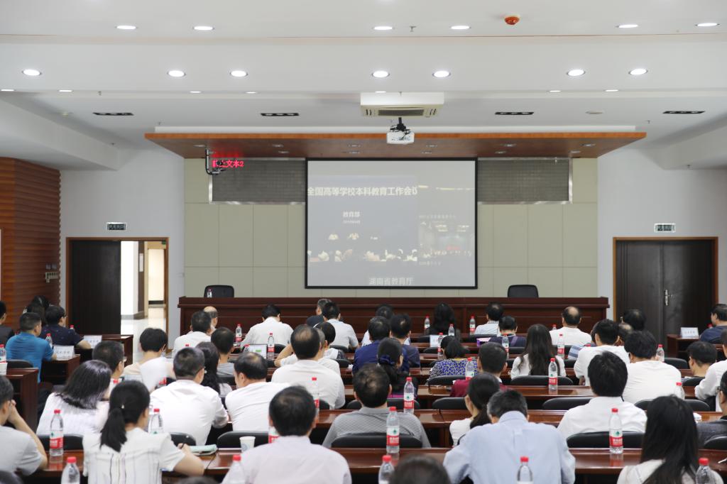 6月21日,教育部在四川成都召开新时代全国高等学校本科教育工作会议,在四川大学设主会场,雷竞技官网设分会场。下午3点在一办公楼9楼会议室,副校长蒋昌波,学工部、规划法规处、团委、招就处、信息化中心、高教所、工训中心、心理中心主要负责人,各学院院长、教学副院长、系主任、教务办主任、教师代表,教务处全体人员,校教学督导团团长等200余人参加会议。