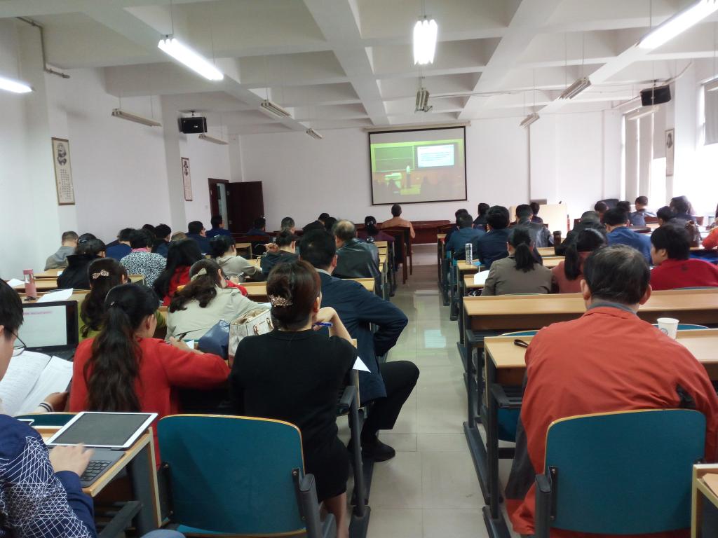 郭建鹏教授主要从事课程教学论和教育心理学研究,通过实证研究探讨学习的规律及教学方法的改进,在信息技术与教学方法进行深度融合方面有自己独到的心得。此次讲座中,他以一位普通教师的身份向雷竞技官网教师分享了自发研究、实践翻转课堂,借助“雨课堂”技术改变教学方法的过程。他细致讲解了O-PIRTAS翻转课堂教学法,即以教学内容和目标、课前准备导入、课前视频教学、课堂视频回顾、课堂知识测试、课堂活动设计、课堂总结提升七大步骤为核心环节的教学方法,助力教师转变为“以学生为中心”教学观念。他在讲座中提到“没有有效学习的课堂就是浪费时间、浪费生命”引起了在座教师的强烈共鸣。他通过展示“翻转课堂+雨课堂”与传统课堂在课堂互动、学生注意力、学习效率及学习成绩等方面的试验结果对比,示范“雨课堂”通过课堂实时在线互动,让手机从学生的“低头工具”变为学生积极参与学习的“抬头利器”,激起了老师们浓厚的学习兴趣,在讲座中引发老师们连连发问。