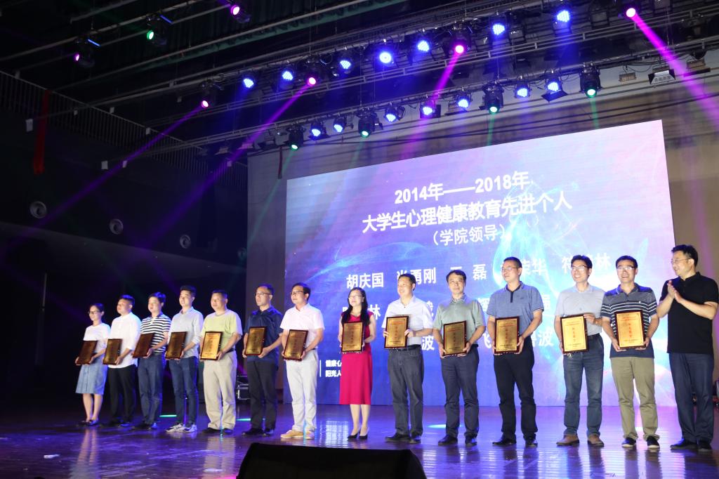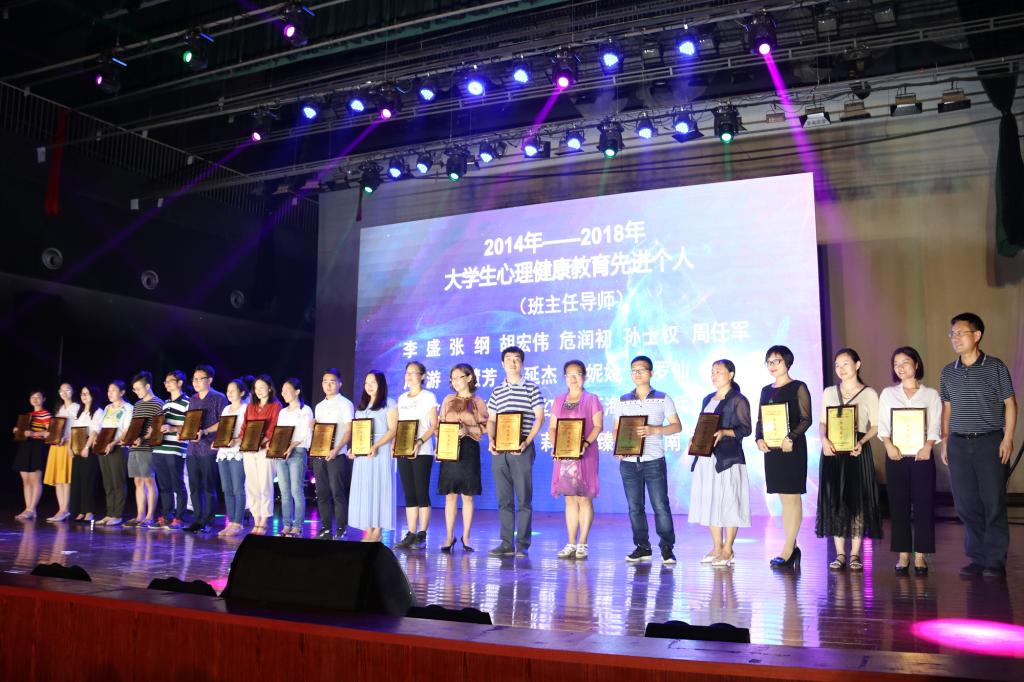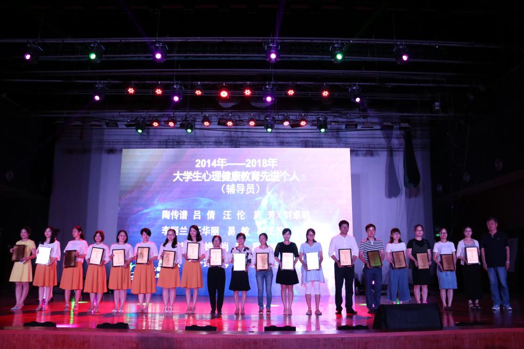 晚会上,授予10个学院“2014-2018年长沙理工大学大学生心理健康教育工作优秀集体”称号;授予13名二级学院领导、24名班主任和研究生导师、20名辅导员“2014-2018年长沙理工大学大学生心理健康教育工作先进个人”称号;同时还授予10个学院的朋辈心理互助组织“阳光团队”称号,107名朋辈心理互助员“阳光朋辈”称号。