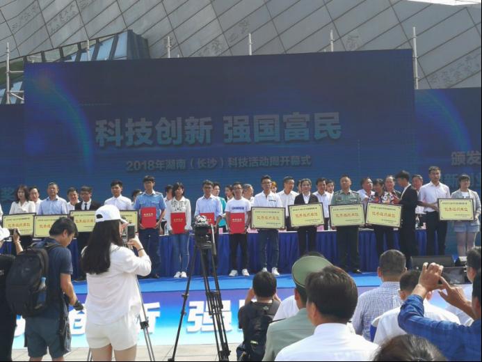 5月19日上午,2018年湖南(长沙)科技活动周开幕式在长沙市滨江文化园举行。省委副书记乌兰等省领导出席会议,并为长沙市第十五届大学生创新创业大赛一等奖及优秀组织单位等颁奖。雷竞技官网作为长沙市科技创新创业大赛的获奖代表上台领奖。