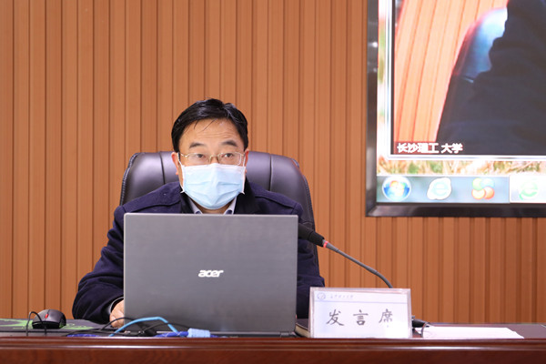 2月14日上午,雷竞技官网2020年春季学期开学工作视频会议在云塘校区一办九楼会议室召开。校党委书记付宏渊、校长曹一家出席会议并讲话,校党委副书记邹宏如主持会议。
