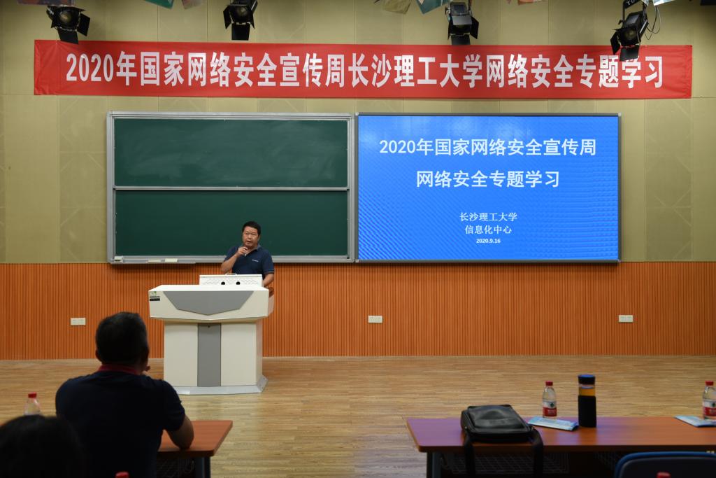 为了深入宣传贯彻习近平总书记关于网络强国的重要思想和对网络安全工作“四个坚持”的重要指示,宣传落实《网络安全法》,提升全校师生网络安全意识和技能,9月16日雷竞技官网在信息化中心演播厅组织进行了2020年国家网络安全宣传周专题学习和网络安全教育培训活动。所有校属二级单位的网络安全和信息化专兼职管理员、在用业务系统(网站)管理员等共计60余人参加了本次活动,信息化中心主任陈赟等部门负责人出席。