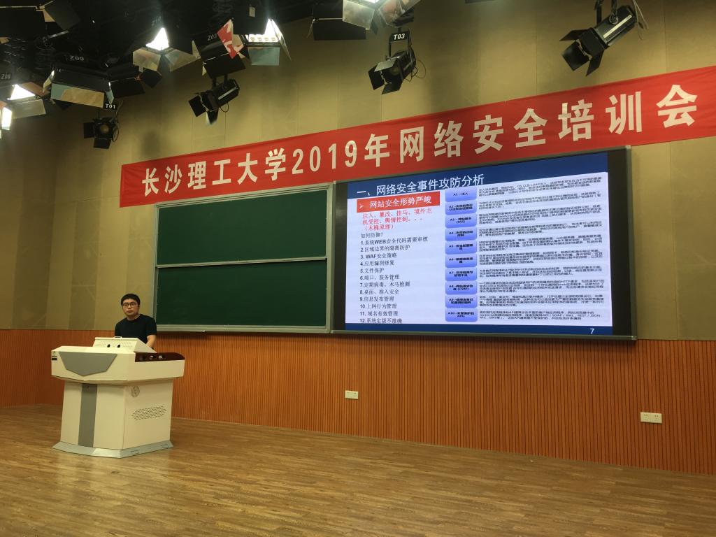 为深入贯彻执行习近平总书记关于网络安全和信息化的重要指示精神,进一步提高学校网络安全和信息化专兼职管理队伍的网络安全意识、推进学校网络安全管理各项工作,在信息化中心的组织下,“长沙理工大学2019年网络安全培训会”于6月4日上午在云塘图书馆附3楼演播厅顺利进行。本次培训,以校属各单位网络安全和信息化分管领导、信息员或联系人为重点对象,共计90余人参加。