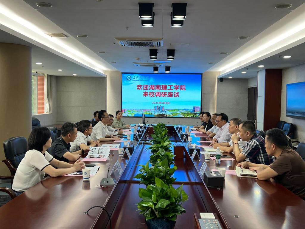 5月8日,湖南理工学院副校长丁跃浇等一行7人来雷竞技官网调研。座谈会在云塘校区一办三会议室举行,...