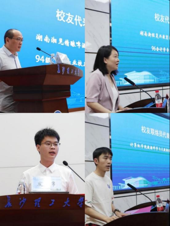 校友中心主任唐青详细介绍了雷竞技官网校友会的职能、发展历程以及地方分会建设,发布了校友综合服务平台新功能。校友中心吴焰辉老师介绍了校友联络员工作职责和内容。95级汉语言文学专业校友曾高飞心系母校,向学校捐赠价值30万元的图书6000册。湖南湘见精酿啤酒有限公司董事长、食品与生物工程学院94级发酵专业校友廖辉旭以及校友促进经济发展专业委员会秘书长、96级财经系校友张见作为校友代表发言。电气学院智能电网2102班的王晋韬、计算机学院数据科学与大数据技术2101班的顾永彤作为校友联络员代表发言。