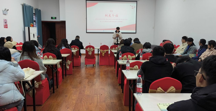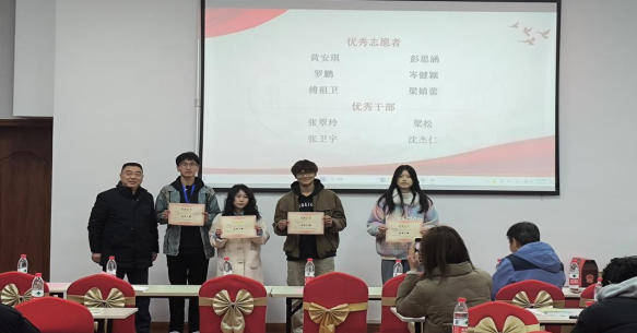 协会会长张翠玲作年度工作报告,她通过“回顾成效、部署计划、展望未来”三个维度系统梳理协会工作。为强化组织管理,综合办公室主任陶文加现场解读值班考勤制度,信息技术部部长沈杰仁演示活动设备操作规范。在团队建设环节,新老成员通过创意自我介绍展开破冰互动。会议表彰环节,肖晖、陈寿祺老师为优秀志愿者及优秀班干部颁发证书。另外,会议特别设置校史培训专场,肖晖老师通过珍贵历史照片、校友捐赠实物等载体,带领志愿者沉浸式回顾场馆发展历程,以专业素养讲好“校友之家”故事。