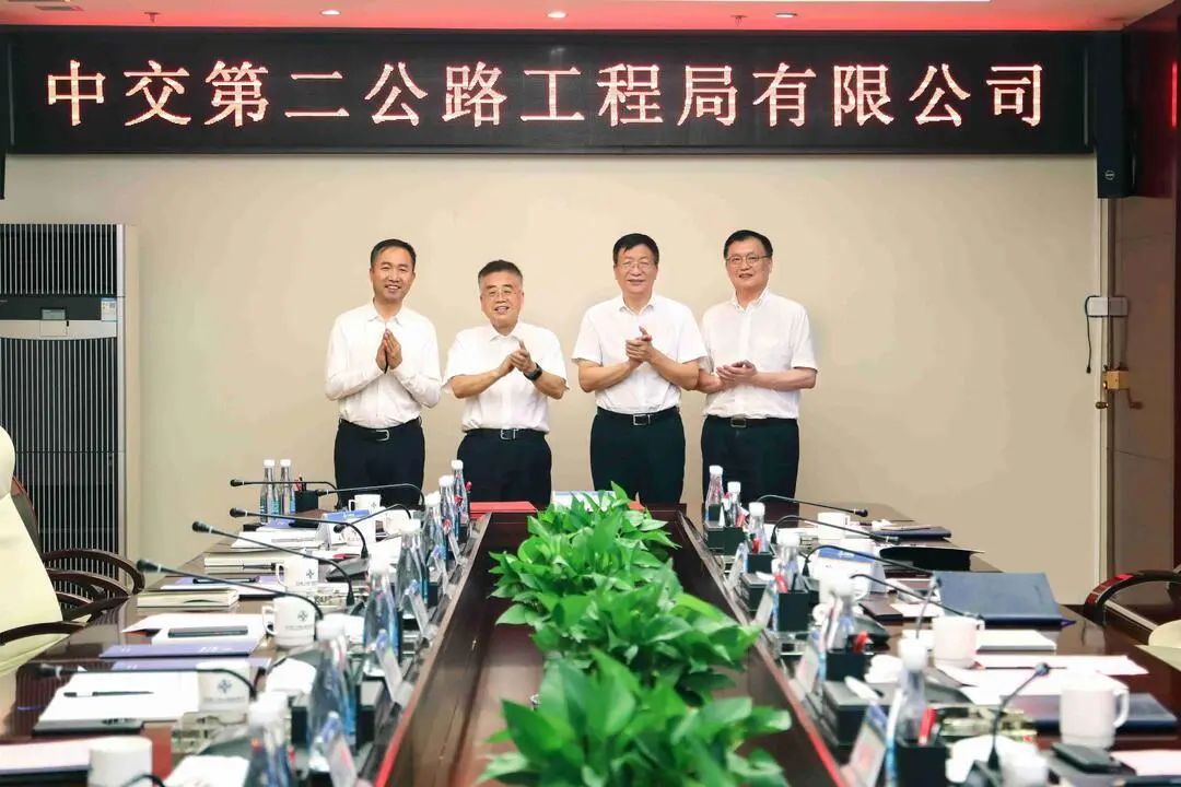 中交二公局党委书记、董事长赵桢远会见付宏渊一行。付宏渊对中交二公局长期以来在人才培养、科学研究等方面给予的支持表示感谢,对中交二公局取得的发展成就表示赞赏,并详细介绍了学校近年来发展情况和人才培养新机制。他表示,中交集团是国内最早“走出去”的中央企业之一,是“一带一路”倡议的重要参与者、建设者和贡献者,一大批长理校友在中交集团逐渐成长为行业骨干。希望双方进一步推进科技创新联合攻关、加强高层次人才联合培养、强化校企沟通、深化务实合作,在有组织科研攻关、创新人才培养新模式等方面打造校企合作新典范。赵桢远对付宏渊一行到访表示欢迎,对长沙理工大学长期以来在人才培养、项目建设等方面给予的支持表示感谢。他表示,双方在学生定向培养、实习实践、企业员工教育培训、科研攻关等诸多领域建立了良好合作机制、取得了丰硕合作成果,希望继续深化交流、持续增进感情,推动双方在人才培养、技术研究应用、成果转化等方面深度合作,共促科技成果高质量转化。会上,谈传生与中交二公局党委副书记、工会主席谢国强代表双方签署战略合作框架协议。此次战略合作框架协议的签订标志着校企合作由情感纽带助力迈向深度有序合作的新阶段。根据协议,双方将充分发挥各自优势,共育优秀人才、共推成果转化、共建科技平台,深化产学研用一体化合作模式,提升人才培养水平和科技创新能力,更好推动行业和区域经济社会高质量发展。