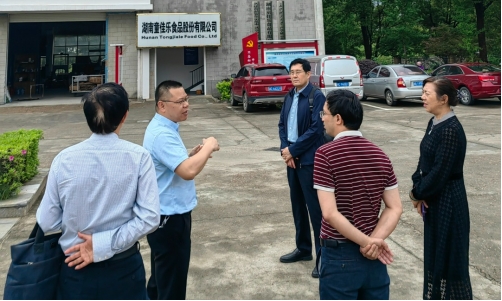 上午,洪源渤一行来到湖南童佳乐食品有限公司,公司董事长、食品科学与工程专业03级校友彭仁杰热情接待,并表示感谢母校对校友的关怀。